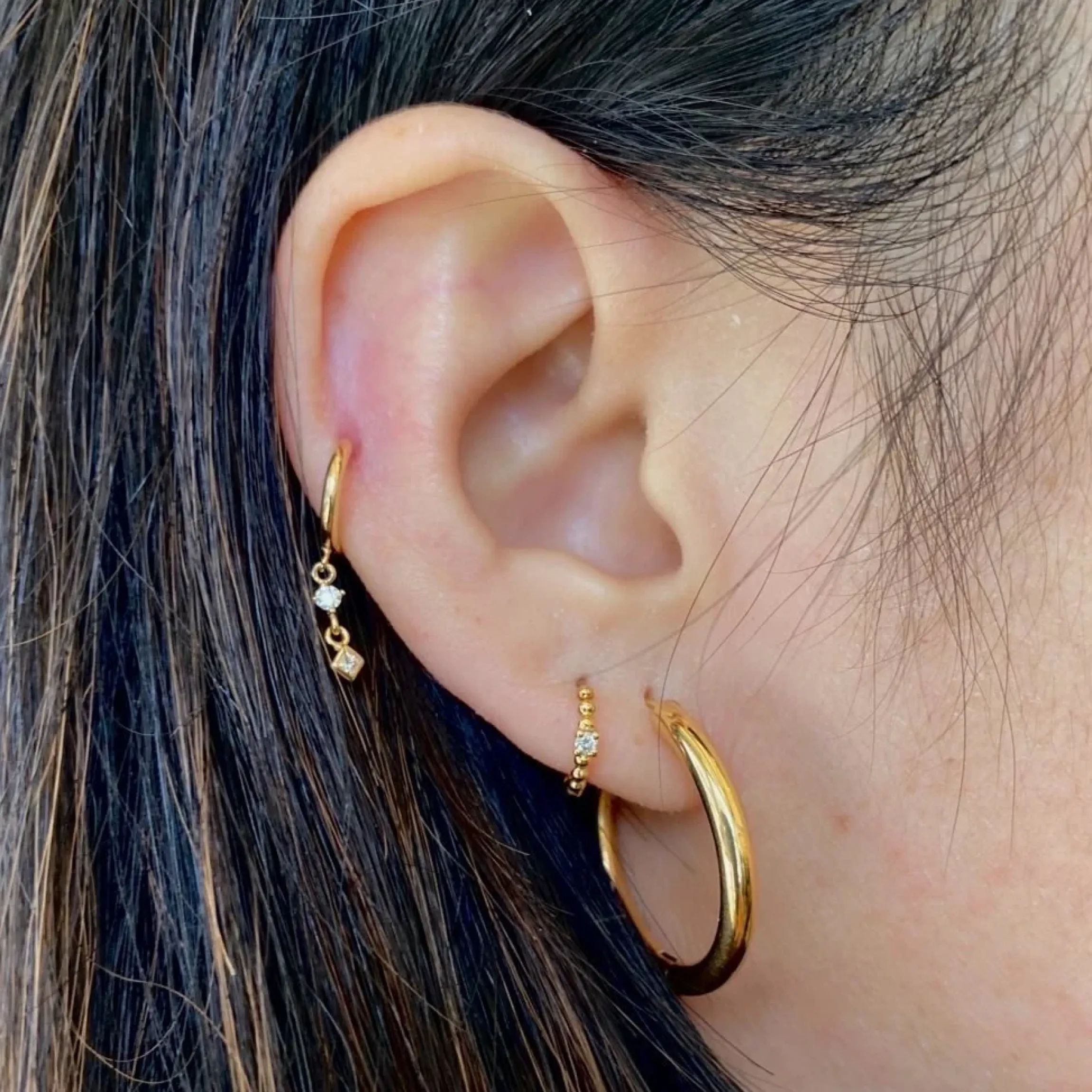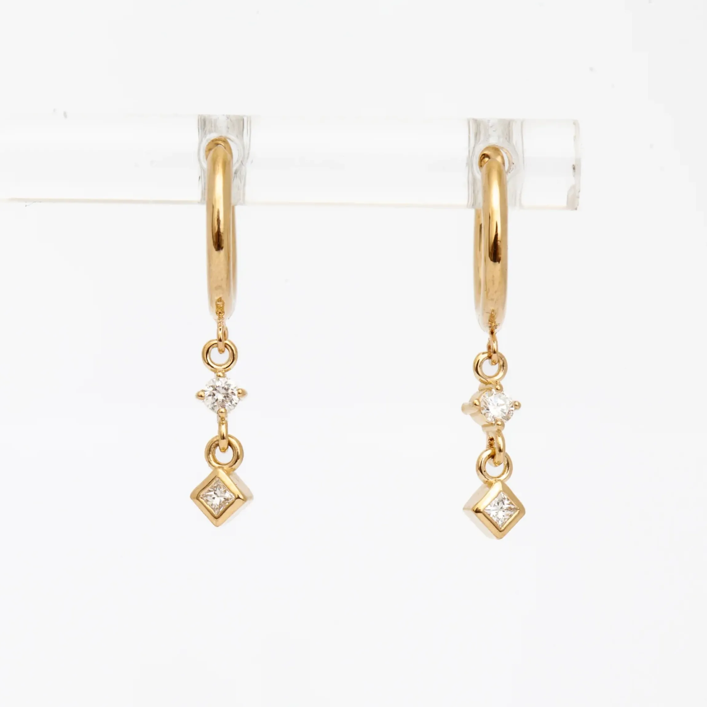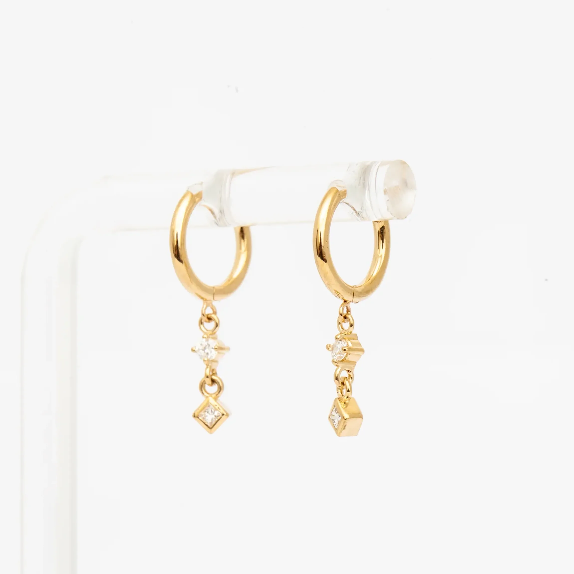 These huggies speak for themselves. Featuring an intriguing drop design with both a round and princess-cut white diamond, these fun and playful Zoe Chicco earrings will become a staple in your ear stack. Stack them with other hoops, wear them on a higher piercing, or wear them on their own, either way, we are sure these will be your new favorite piece. Made in the U.S.A.