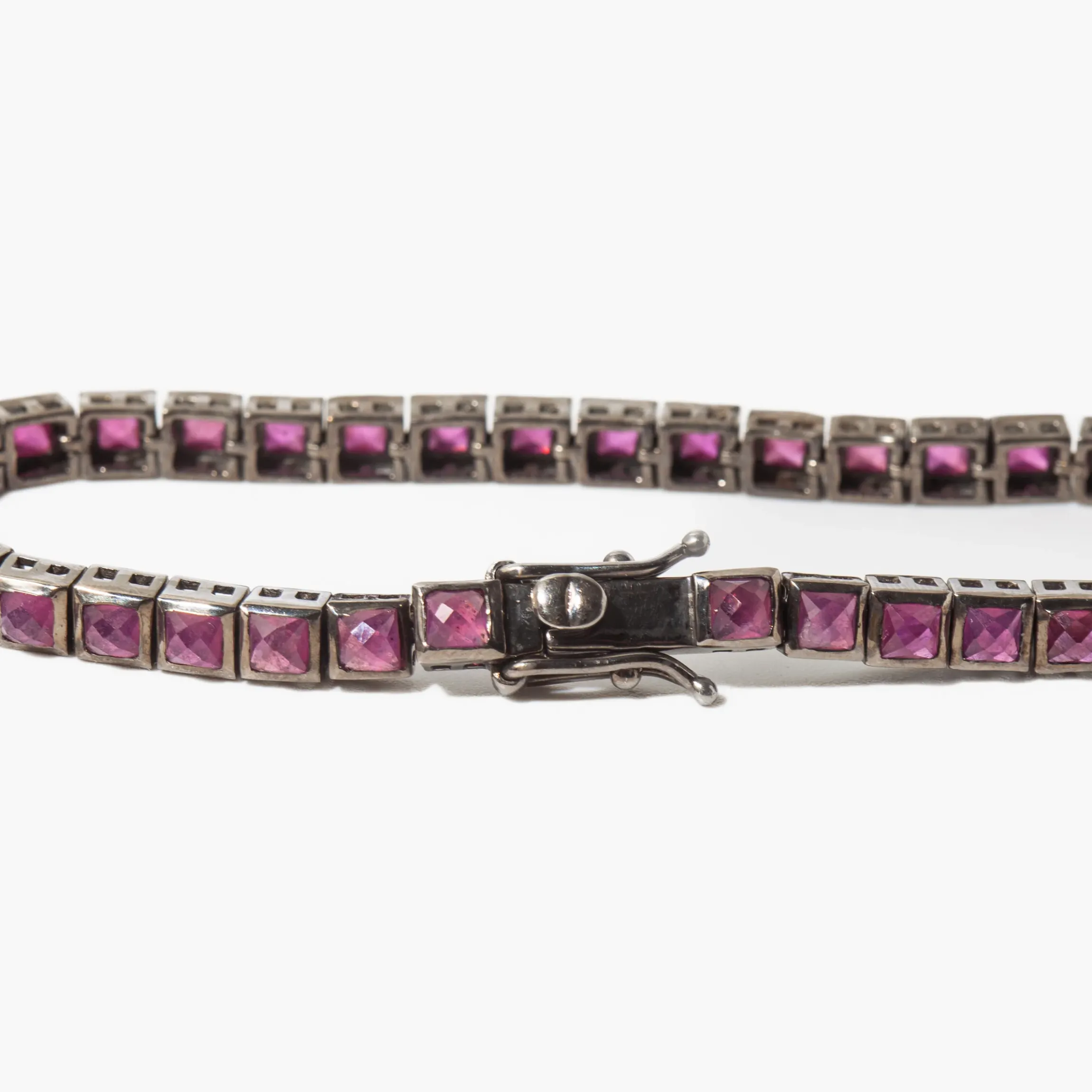 Escape the ordinary with this modern and daring ruby tennis bracelet. Nak Armstrong’s affinity for intricate metalworking and alternative design make this the perfect bracelet to inspire bold style. Stand out from the crowd and make a statement with this one-of-a-kind piece. Designed in Austin, Texas.