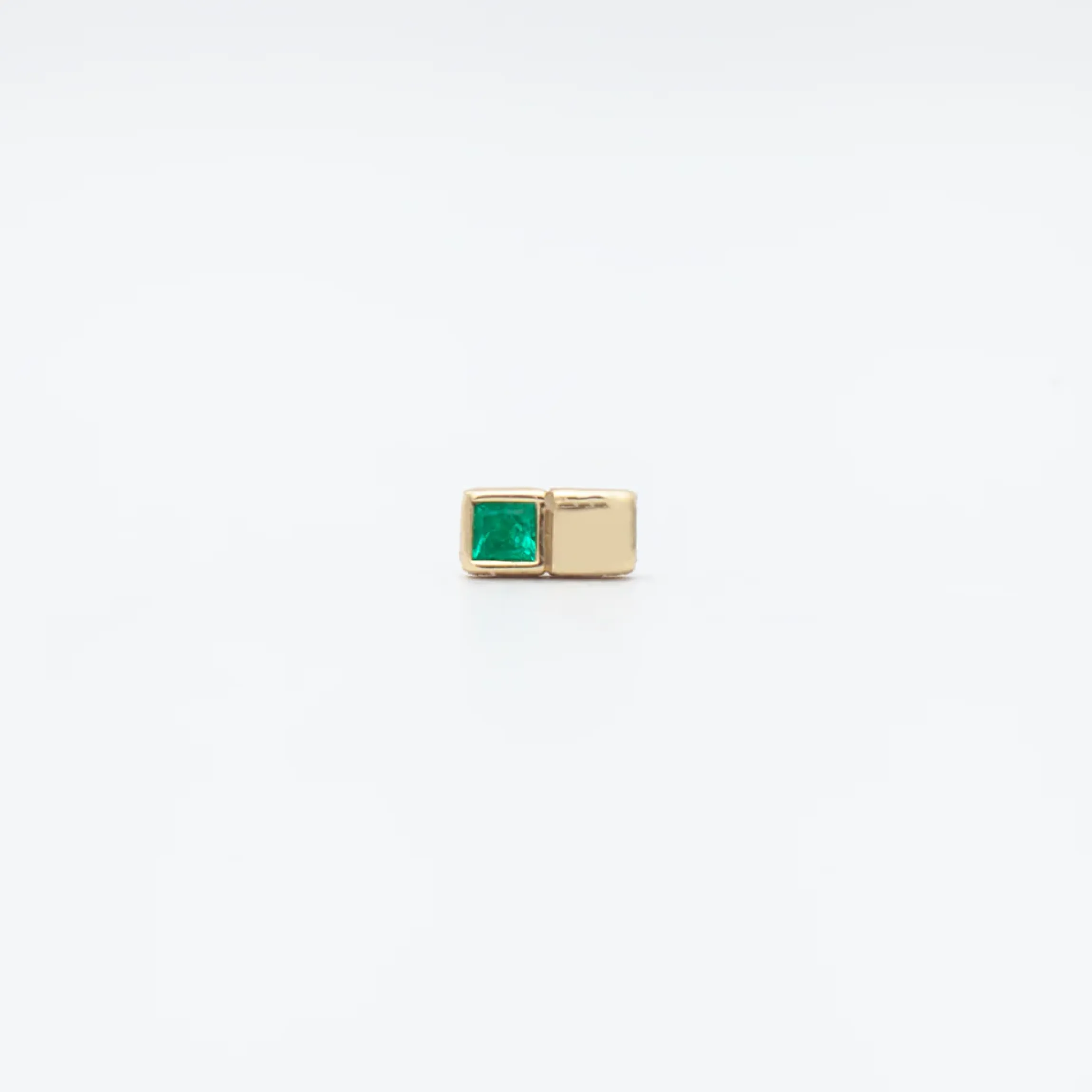 Another stunning piece from Jennie Kwon’s stud collection, this clean, geometric piece is eyecatching in its simplicity and tiny boldness. A single brilliant emerald is mirrored by a bright gold counterpart—the perfect addition to any ear curation.