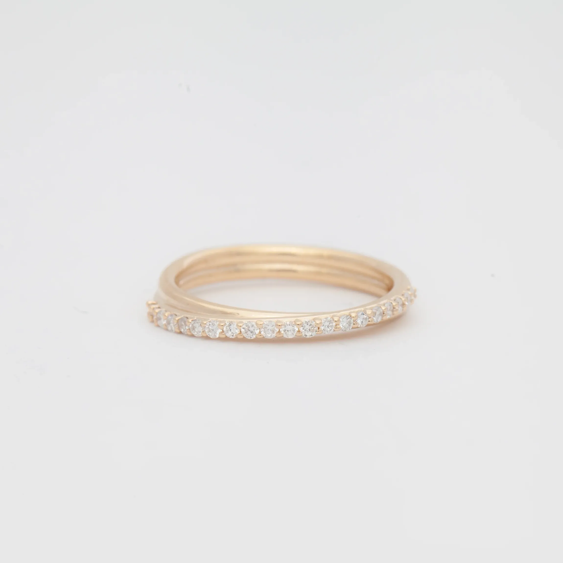 Gold and diamond live in perfect harmony on this delicate band that updates classic styling with undulating form. Inspired by the Moebius loop, designer Wing Yau transforms esoteric mathematics into sculptural wonder. Easy to wear everyday, yet extraordinary in its finish, this style makes for a perfect fashion piece or a chic alternative wedding band. Made in the U.S.A.