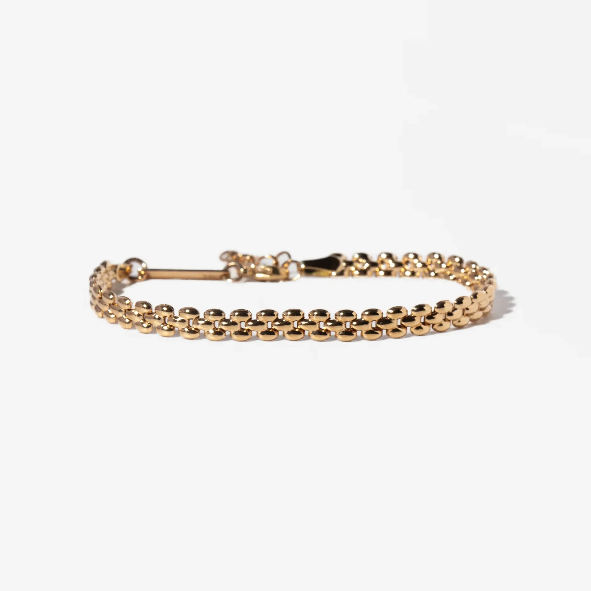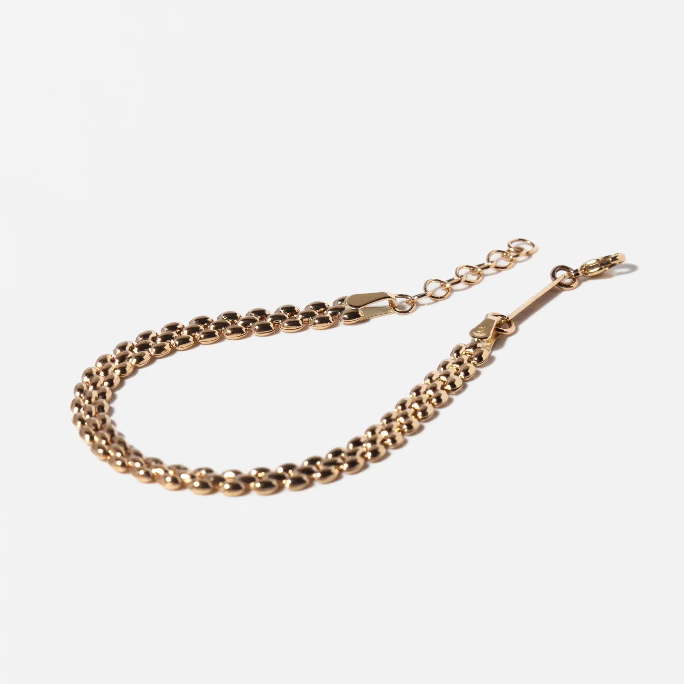 This bracelet is a timeless classic. With three layers of oval bubbles, it’s a classic addition to any stack or a perfect golden gift. Made in the U.S.A.