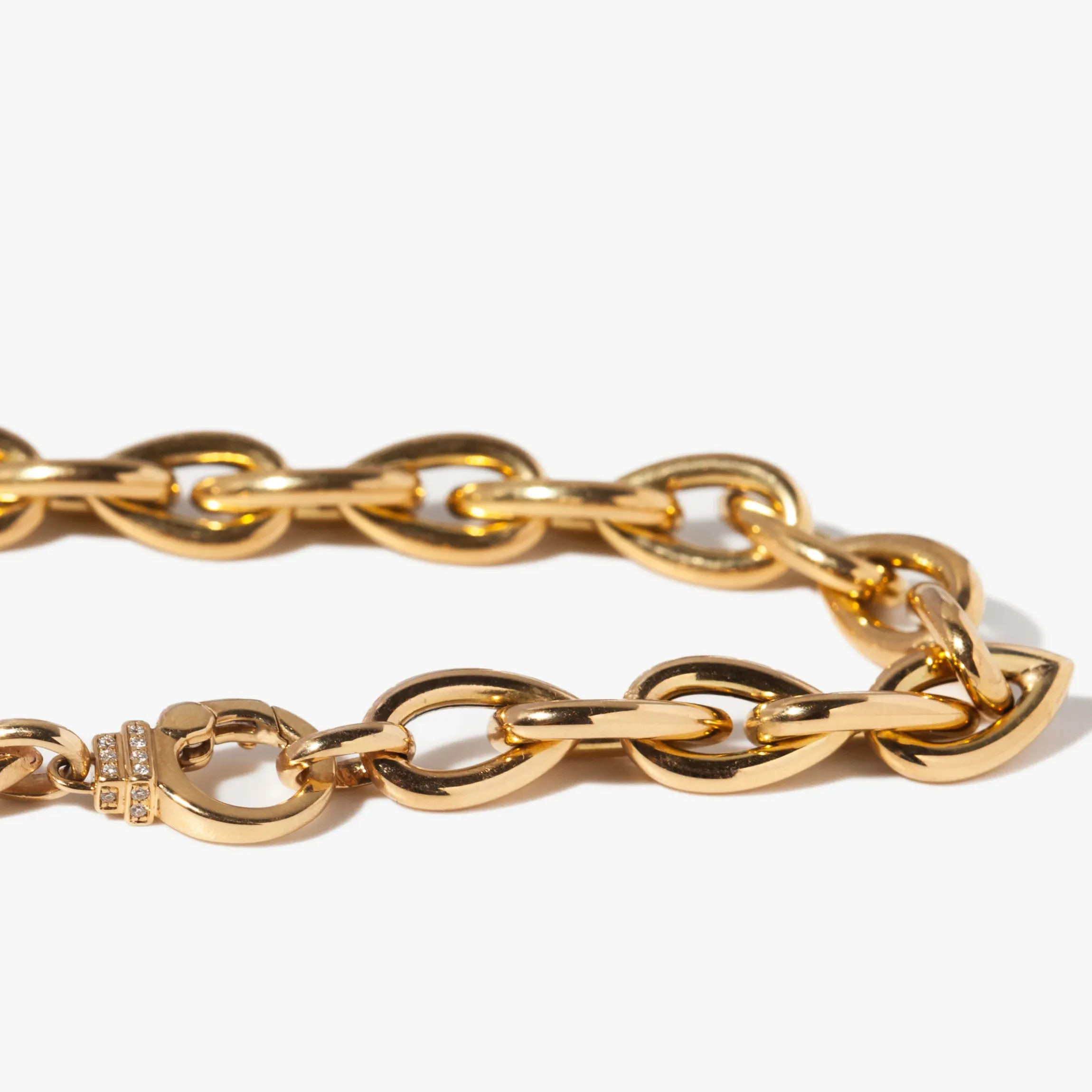 With chunky teardrop shaped chain links and a signature diamond covered Sorellina clasp, this new bracelet is a dream to stack. Plus, it’s interesting from all angles–mix with other bracelets and keep the compliments coming! Made in New York City.
