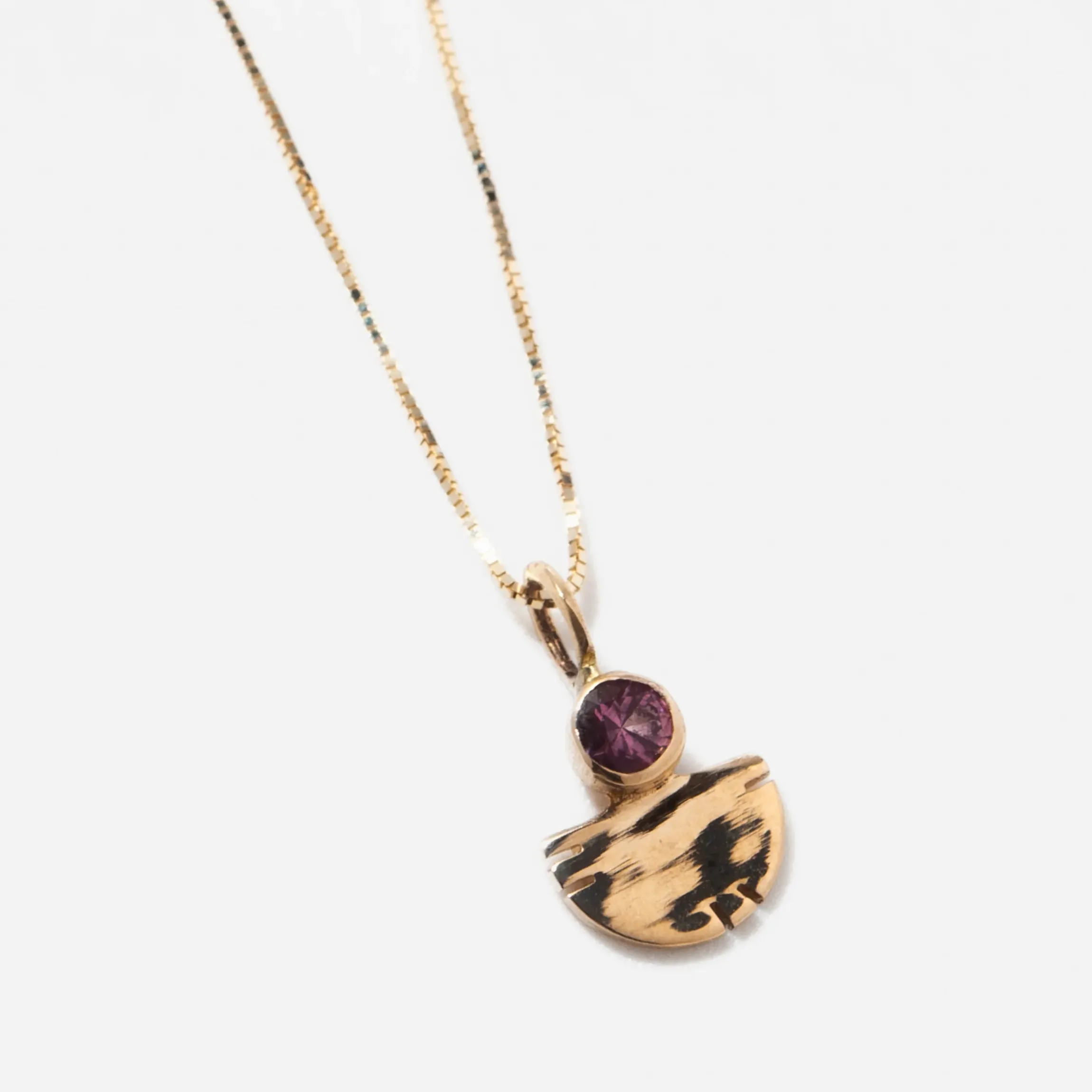 Channelling the mighty Aquilla of Greek mythology, this necklace was crafted to pay homage to the eagle’s noble spirit. The half-moon shapes feature delicate notches reminiscent of feathers. Perched atop is a California-mined bright pink tourmaline, capturing the watchful gaze of an eagle.