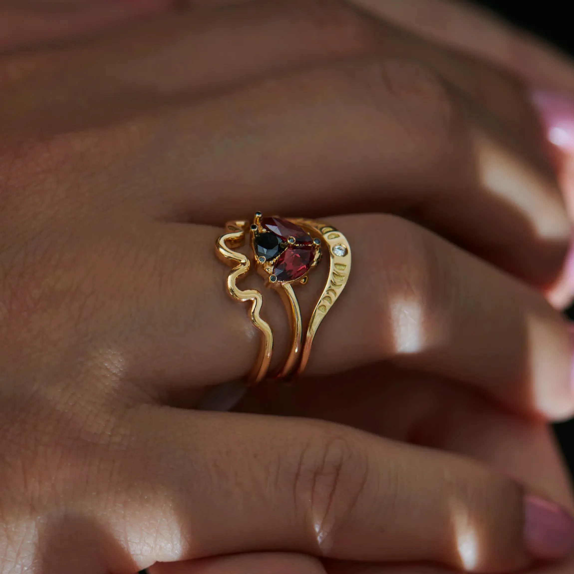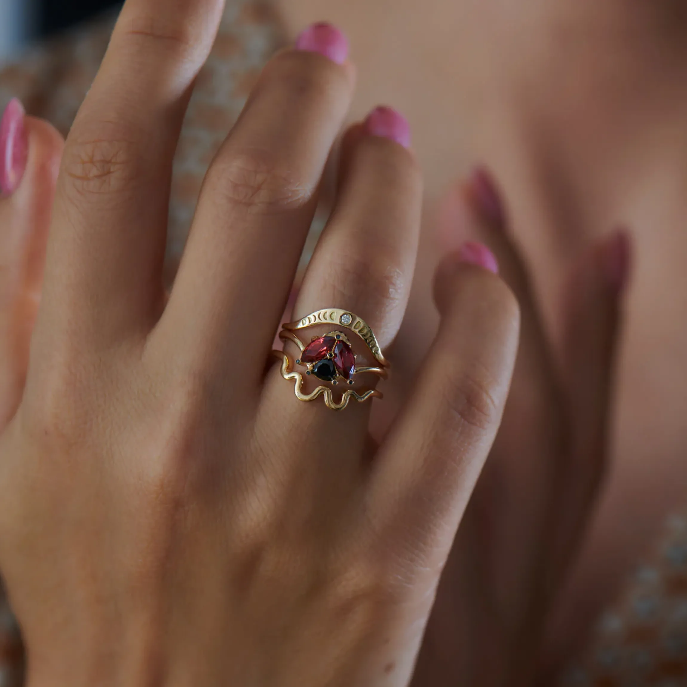 The Wave solid gold wedding band is handcrafted from 18K gold. Its undulating design adds an elegant aspect of movement to any look. Wear it alone or stack it with your favourite rings for subtle yet playful touch.