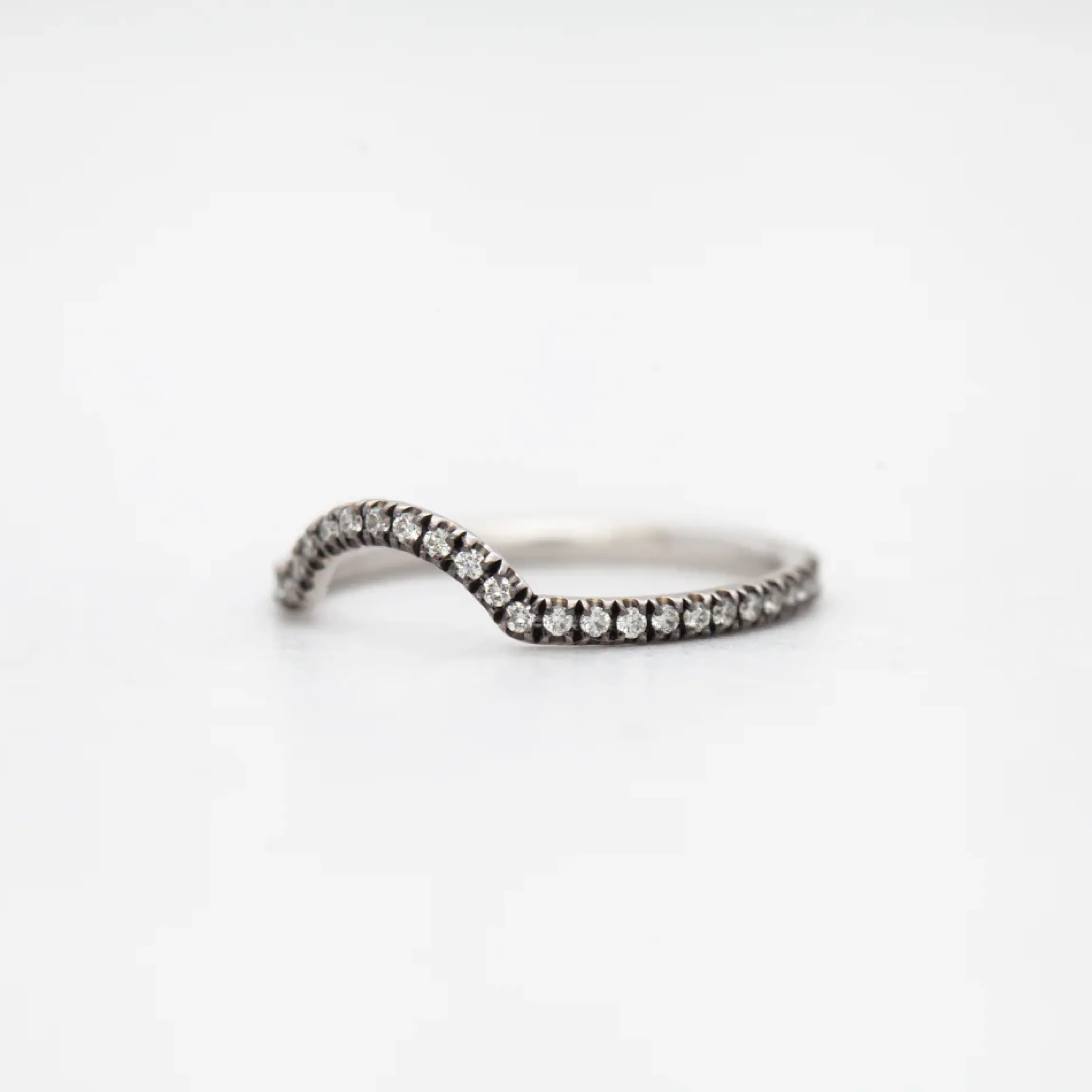 Don’t be fooled by its delicate nature—this scalloped band by Anna Sheffield packs a high-contrast punch thanks to a touch of black rhodium. Brides will find that it gracefully nests with a myriad of different engagement ring styles, making it a perfect addition to almost any stack. Designed in New York.